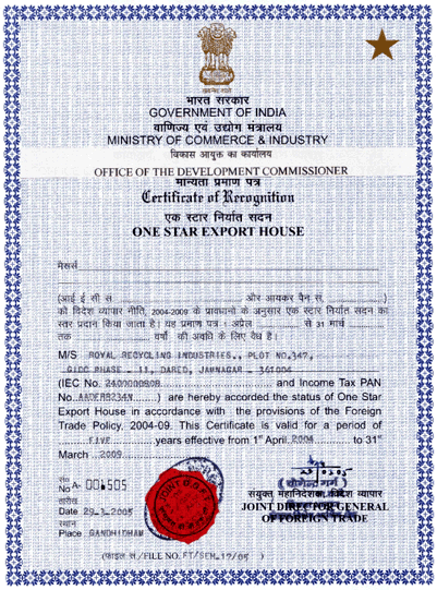 Export of Ferrous and Non-Ferrous Metal. We received market support